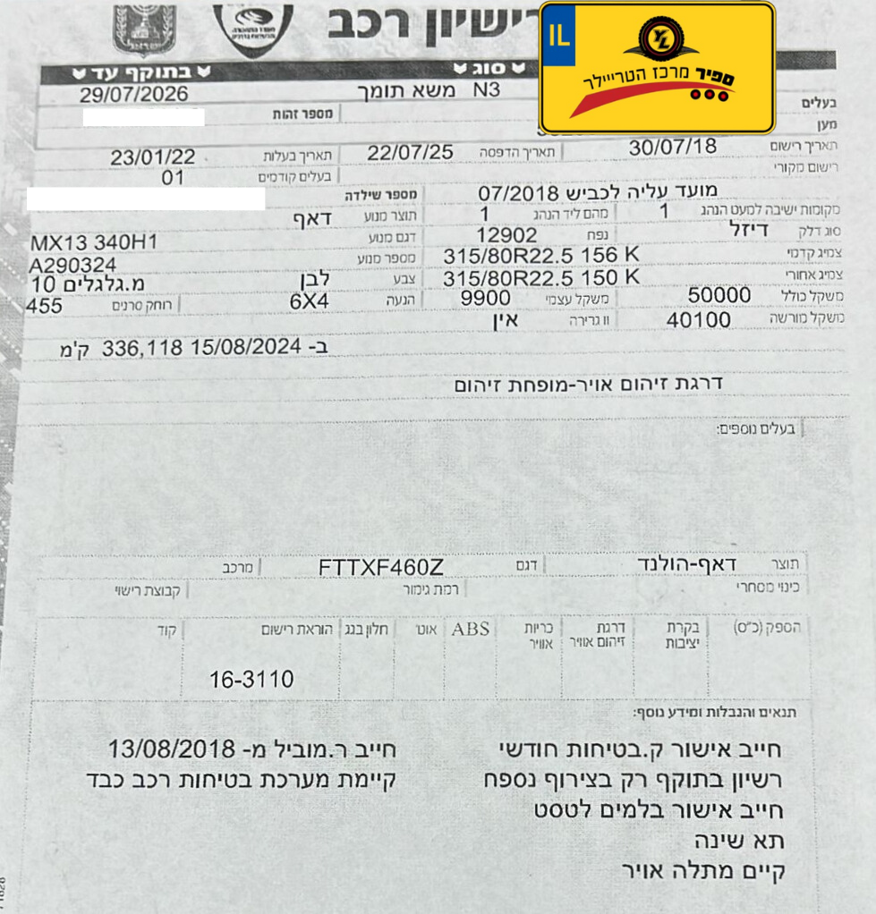משא תומך דאף 4*6 שנת 2018